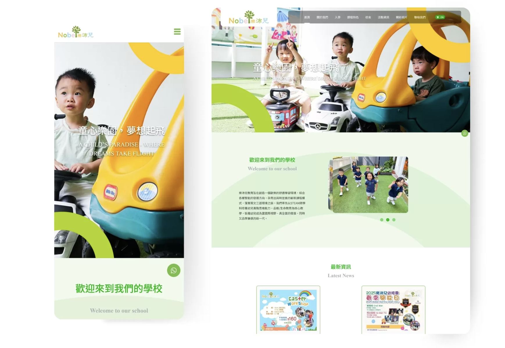 樂沛兒幼稚園致力於打造歡樂、舒適的學習環境,結合多元智能發展方向。透過開發具完整管理功能的網站,不僅能清楚呈現教學理念,網上入學申請系統也大幅提升行政效率,而易於維護的後台也讓校方能自行即時更新內容。