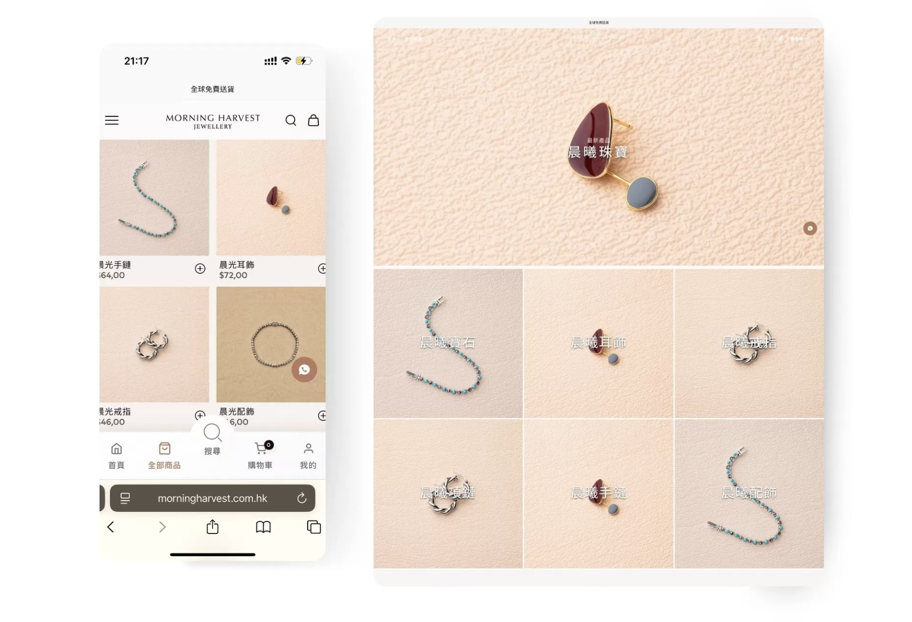 Morning Harvest 是面向香港市場的線下銀器珠寶品牌,透過多頁式網站設計打造一個能精美展示珠寶產品、提升會員忠誠度,並實現精準營銷的一站式電商平台。