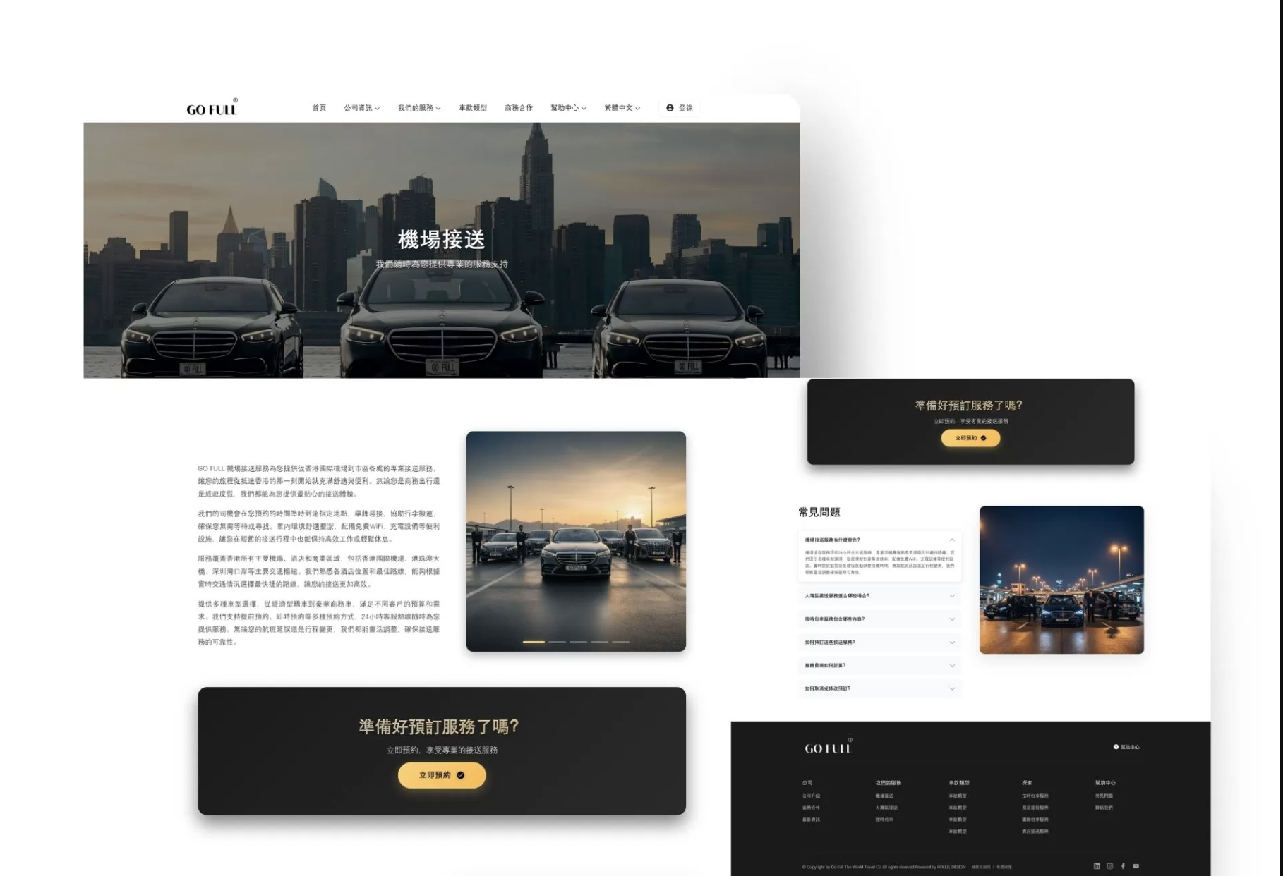 GO FULL 是一家提供高端私人出行服務的公司,透過多頁式網站設計規劃與搭建品牌網站,成功將其品牌理念與服務框架從抽象概念轉化為可交互的視覺原型,提升了客戶預約的順暢度與使用體驗。